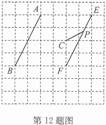 12. 在如图的网格中,A,B,C,E,F均为格点,点P在线段EF上.