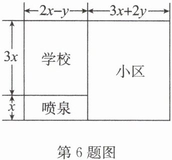 答案:6. 解:这块地的面积为$3x(2x-y)+(3x+2y)(3x+x)+x(2x-y)=6x^{2}-3xy+12x^{2}+8xy+2x^{2}-xy=20x^{2}+4xy$。