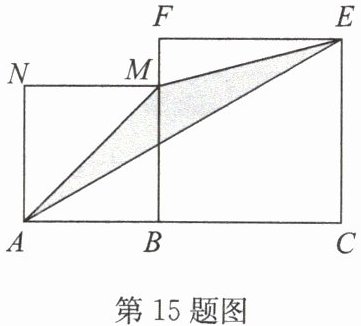 15. 如图,点$B$在线段$AC$上$(BC>AB)$,在线段$AC$同侧作正方形$ABMN$和正方形$BCEF$,连接$AM$,$ME$,$EA$得到$△ AME$.当$AB = 1$时,$△ AME$的面积记为$S_{1}$;当$AB = 2$时,$△ AME$的面积记为$S_{2}$;当$AB = 3$时,$△ AME$的面积记为$S_{3}$,…,则$S_{21}-S_{20}=$
