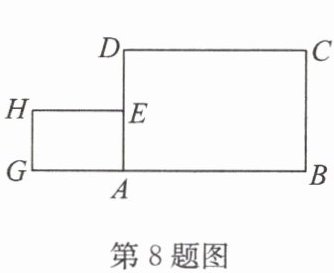 8. 如图,在长方形 ABCD 中,AB = 6 cm,AD = 4 cm。在长方形 GAEH 中,GA = 3 cm,GH = 2 cm。长方形 GAEH 沿水平方向向右移动,速度为 1.5 cm/s,移动后记重叠的面积记为 S,当 S = 4 cm² 时,平移的时间为
