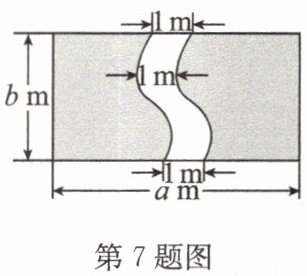 7. 如图,在一块长方形草坪中间,有一条处处 1 m 宽的“曲径”,则“曲径”的面积为