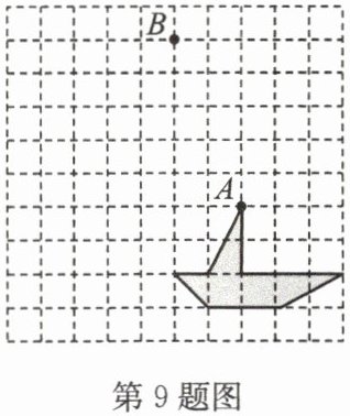 9. 在如图所示的正方形网格中,阴影部分是一条“小船”,点 A,B 都在格点上。按下列要求画图: