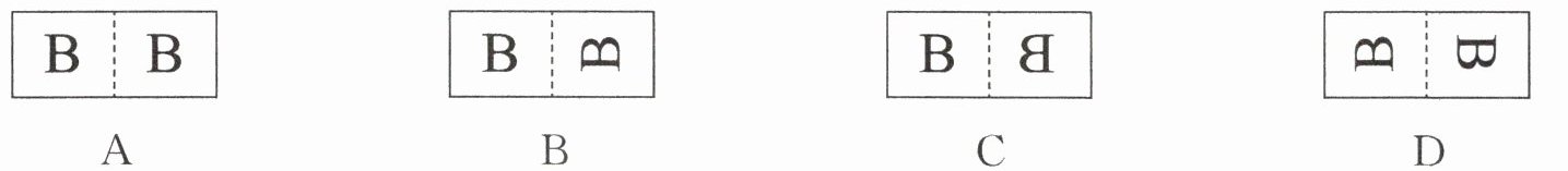1. 将一张长方形纸对折,然后用笔尖在纸上扎出“B”,再把纸铺平,可以看到的是(