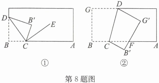 8. (2024·宿迁期末)(1)如图①,将长方形纸片的一角折叠,使顶点B落在点B′处,折痕为DC.