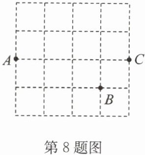 8. (2024·梁溪区期中)如图是 $4×4$ 的正方形网格,每个小正方形的顶点称为格点,其中点 $A,B,C$ 均在格点上. 请在给定的网格中,找一格点 $D$,使以 $A$, $B,C,D$ 为顶点的四边形是轴对称图形,满足条件的点 $D$ 的个数是