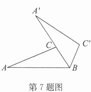 7. (2024·姜堰期中)如图,将$△ ABC$绕点$B$顺时针旋转一定的角度得到$△ A'BC'$,此时点$C$在边$A'B$上。若$AB = 5$,$B'C = 2$,则$A'C$的长是