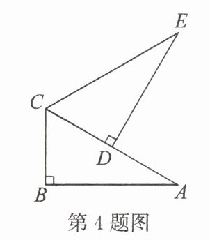 4. 如图,$△ EDC$是由$△ ABC$绕点$C$旋转得到的,且点$D$落在$AC$边上,有下列结论:①旋转中心是点$C$;②$D$是$AC$的中点;③$AC = EC$;④$∠ BCA=∠ DCE$。其中正确的是