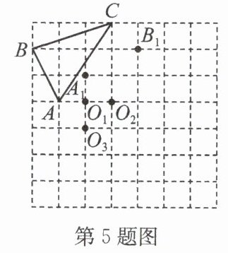 5. (2024·宜兴期末)如图,$△ ABC$绕某点按一定方向旋转一定角度后得到$△ A_1B_1C_1$,点$A$,$B$,$C$分别对应点$A_1$,$B_1$,$C_1$。