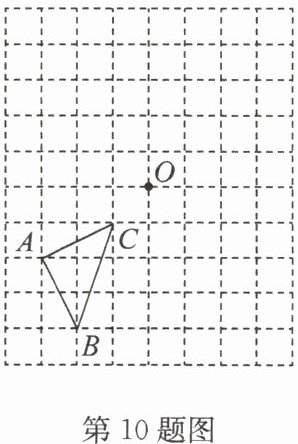 10. (2025·湖滨新区期末)如图,在边长为$1$个单位长度的小正方形组成的网格中,$△ ABC$的三个顶点都在格点上,$O$为$△ ABC$外一点。