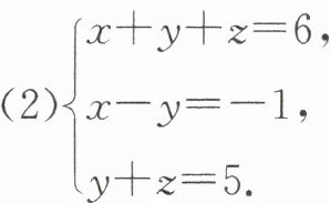 (2) $\{\begin{array}{l} x+y+z=6,①\\ x - y = - 1,②\\ y + z = 5,③\end{array} $