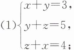 答案:5. 解:(1) $\{\begin{array}{l} x+y=3,①\\ y+z=5,②\\ z+x=4,③\end{array} $