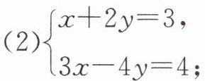(2) $\begin{cases}x + 2y = 3,①\\3x - 4y = 4,②\end{cases}$