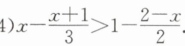 (4)去分母,得6x−2(x+1)>6−3(2−x),