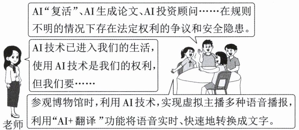 (3)根据材料三讨论内容,运用“权利与义务”的相关知识,说说我们如何正确使用人工智能技术。(11 分)