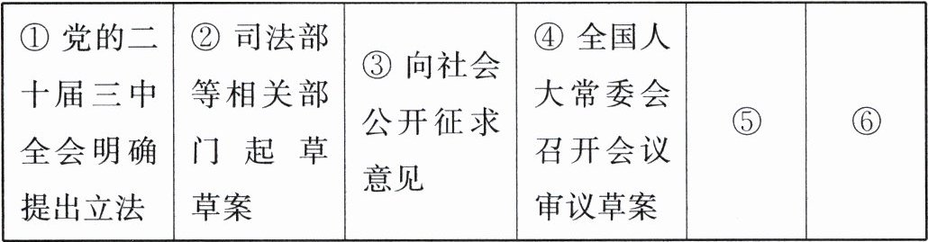 材料二 全国人民代表大会常务委员会工作报告提出,2025 年将围绕健全社会主义市场经济法律制度,制定民营经济促进法。学习小组通过深入学习,整理了该法的制定过程: