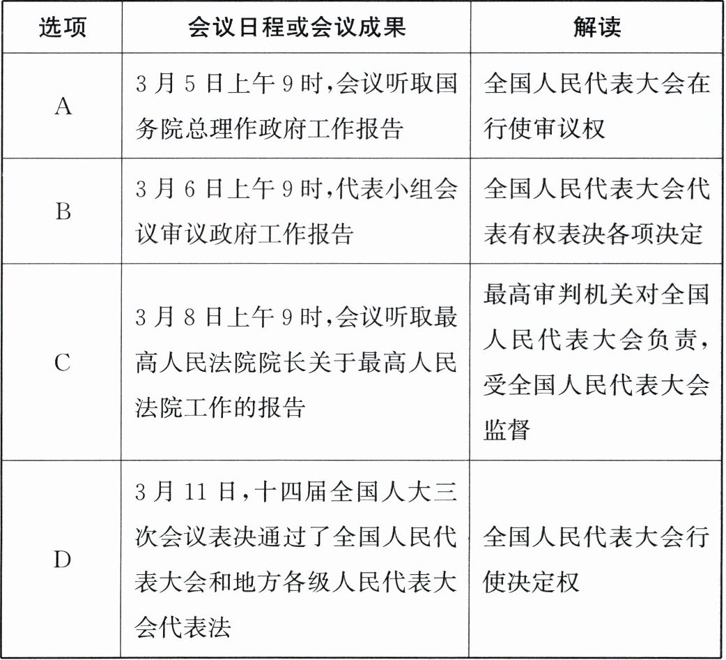 11. 十四届全国人大三次会议于 2025 年 3 月 5 日至 11 日在北京召开,以下对此次会议的部分会议日程、会议成果解读正确的是(