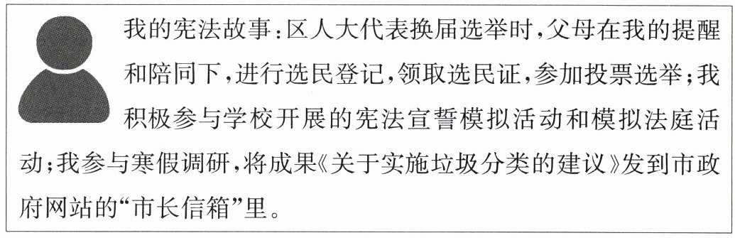 活动二 分享交流时,有同学提到:“宪法是多彩的,我们尊崇宪法,做到崇‘宪’于心,守‘宪’于行。”