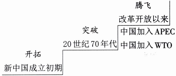 5. 下图是新中国成立以来我国外交成就示意图(部分),图中APEC即亚太经合组织,WTO即世界贸易组织。其中“突破”阶段的外交成就包括(