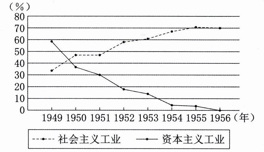 材料二 新中国成立后我国工业产值中部分经济成分所占比重图。
