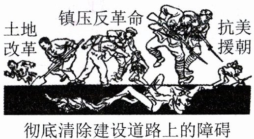 6. 如图是 1952 年出版的《一九五一年漫画集》中的漫画《彻底清除建设道路上的障碍》。漫画中从左到右三大运动的共同作用是(
