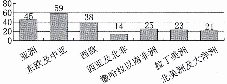 材料二 1993—2014 年我国国家元首出访次数及地区分布示意图。