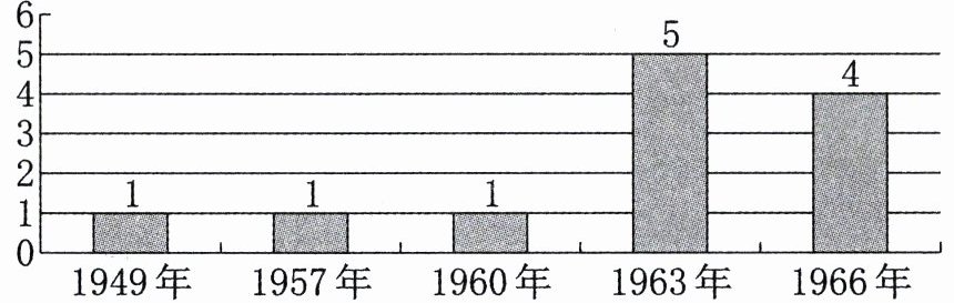 材料一 1949—1966 年我国国家元首出访次数示意图。