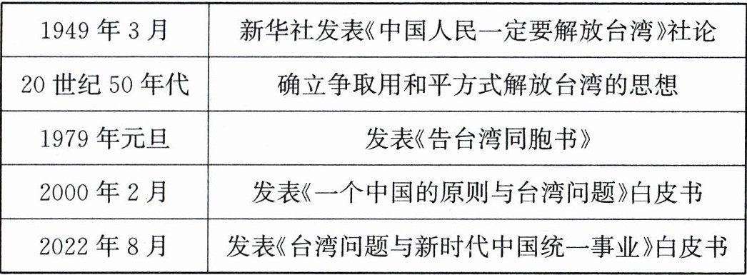 8. 如表所示内容反映出党和政府在对台问题上(