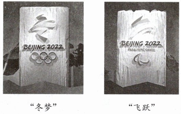 15. 2017 年 12 月 15 日,北京冬奥会会徽“冬梦”和冬残奥会会徽“飞跃”揭开面纱。冬奥会会徽“冬梦”以汉字“冬”为灵感来源,图形上半部分是滑冰运动员的造型,下半部分是滑雪运动员的英姿。冬残奥会会徽“飞跃”设计展现了汉字“飞”的动感和力度,巧妙地展现了一个向前滑行、冲向胜利的运动员形象。两个会徽(