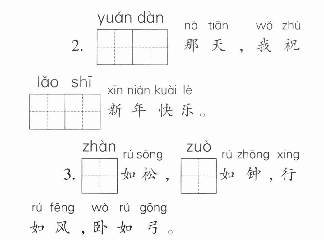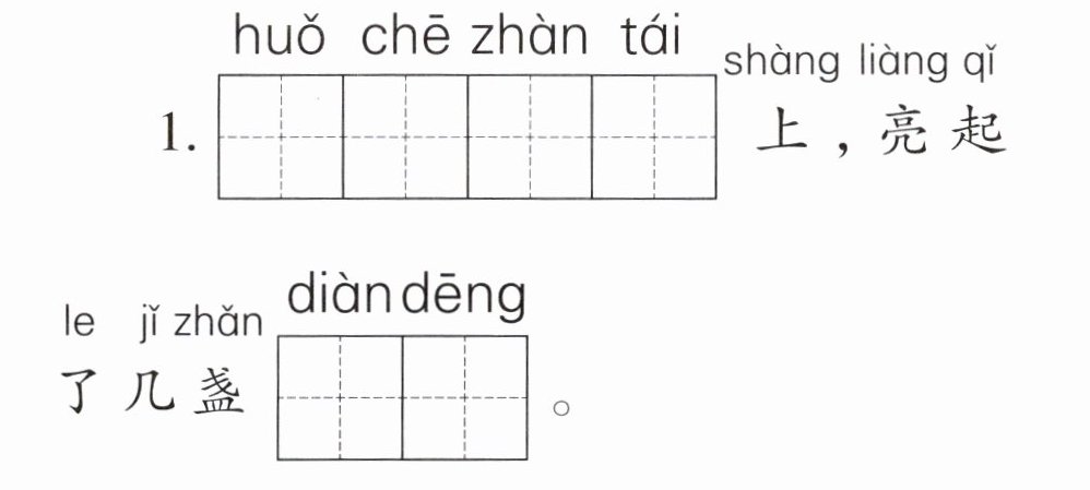 二、1. 火车站台 电灯 2. 元旦 老师 3. 站 坐