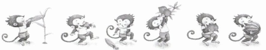 扔——nǐ(图中最后一个小猴对应的动作,实际连接时根据教材原文应为连接“扔”与表示扔的动作图,此处按文字对应关系连“扔”这个字相关,因图未明确文字对应,按动作字本身作答)