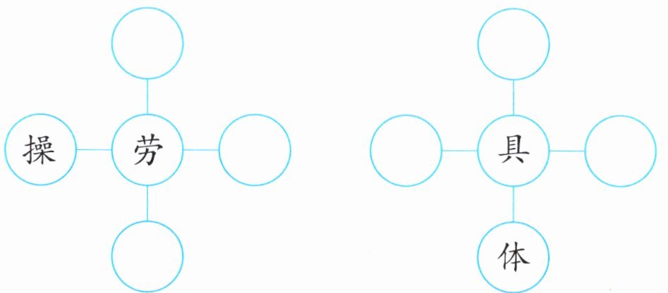 答案:甜:蜜、瓜、品;菜:白、花、叶;劳:动、动、作;具:工、玩、文