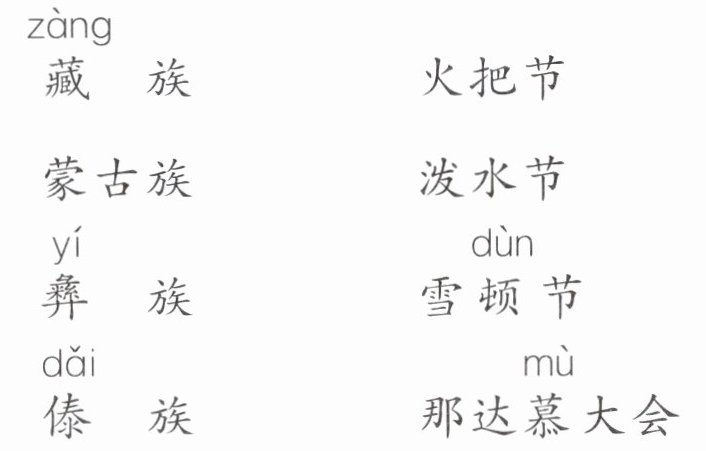 答案:三、藏族——雪顿节 蒙古族——那达慕大会