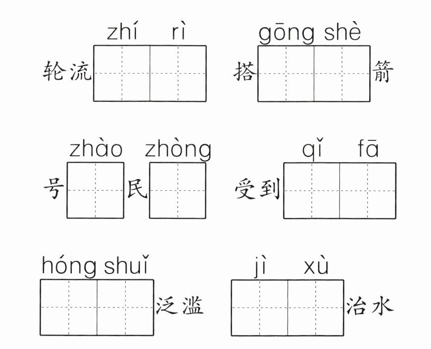 答案:值日 弓射 召 众 启发 洪水 继续 乐业 灿烂