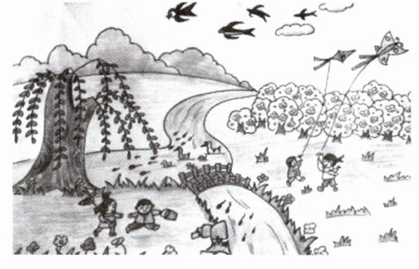 3. 加入人物活动,体现春天的生机与乐趣。