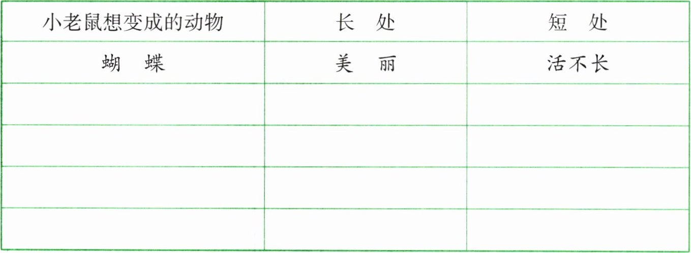 | 小老鼠想变成的动物 | 长处 | 短处 |