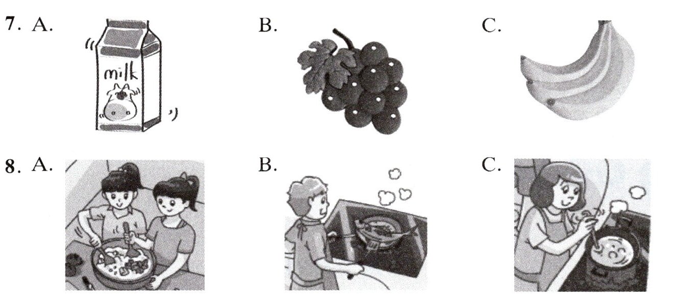 一、听录音,选出与所听内容相符的图片,听两遍。