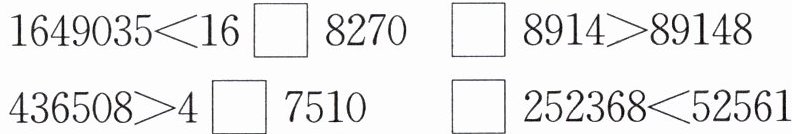 两数均为七位数,前两位相同(16),比较第三位。左边第三位是4,右边第三位为□。若□=4,右边数为1648270,因1649035>1648270,故□需大于4。