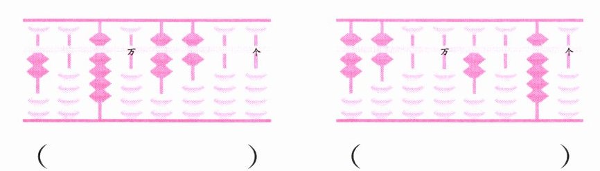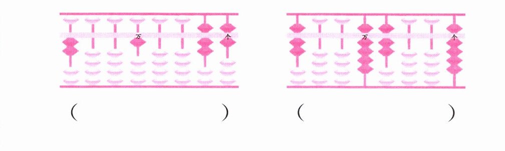 答案:本题可根据算珠的位置确定数的组成,再根据数的读法和写法规则进行读写。一个上珠表示5,一个下珠表示1.