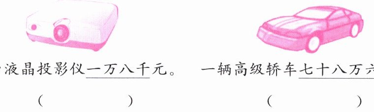 一台液晶投影仪$\underline{一万八千}$元。 一辆高级轿车$\underline{七十八万六千}$元。