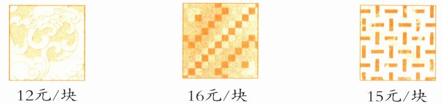8. 学校准备为 18 个教室铺地砖,市场上有以下三种地砖(大小相同)可供选择,平均每个教室大约要用 240 块。