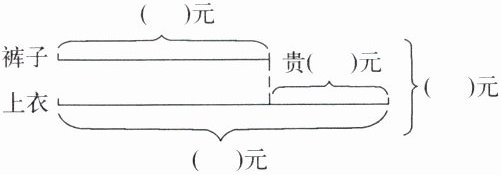 2. 妈妈买一件上衣和一条裤子,一共用去 360 元。如果上衣比裤子贵 100 元,买这件上衣用了多少元?这条裤子呢?(先把线段图补充完整,再解答)