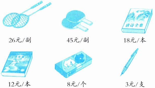 7. 学校举办歌咏比赛,准备颁发$12$个金奖,$20$个银奖,$50$个铜奖。用下面的商品作为奖品,可以怎样设计选购方案?