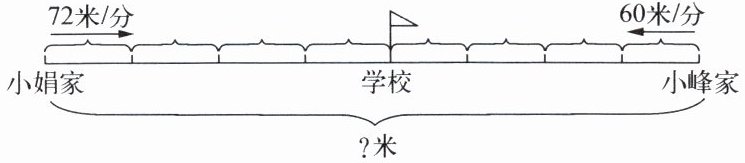小峰家到学校的距离:$60 × 4 = 240$(米),