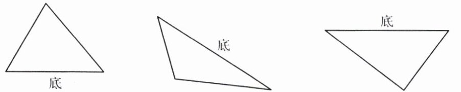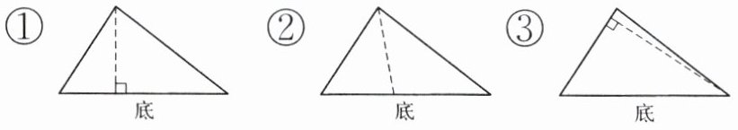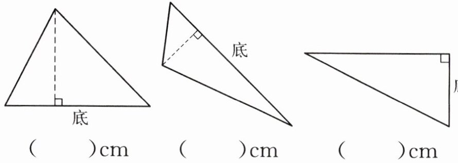 使用直尺测量每个三角形底边上的高,测量结果分别为1.5cm、1cm、1cm。