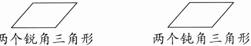 1. 对于“两个锐角三角形”图(实际无法分成两个锐角三角形,平行四边形分成的两个三角形至少有一个是钝角三角形或直角三角形,下面给出正确分成两个三角形的情况):