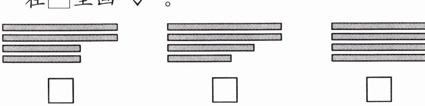 平行四边形的两组对边分别平行且相等,所以要判断几组小棒能否围成平行四边形,需看是否有两组小棒长度分别相等。从图中可知,只有第一组和第三组小棒满足有两组小棒长度分别相等,能围成平行四边形,在第一组和第三组下面的方框里画“√”。