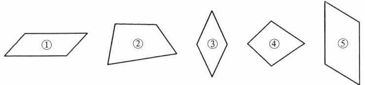 根据平行四边形的定义,两组对边分别平行的四边形是平行四边形。观察图形,①⑤的两组对边分别平行,是平行四边形;②是梯形,只有一组对边平行;③④是菱形,菱形是特殊的平行四边形,其两组对边分别平行。所以①③④⑤是平行四边形。
