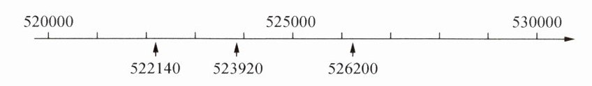 (2) 根据数轴上的位置,522140 在最左边,523920 在中间,526200 在最右边,因此 522140 小于 523920,523920 小于 526200。