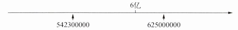 (1) 根据数轴上的位置,625000000 在 542300000 的右边,因此 625000000 大于 542300000。