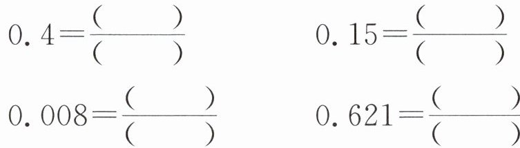 $0.008=\frac{(\ )}{(\ )}$ $0.621=\frac{(\ )}{(\ )}$